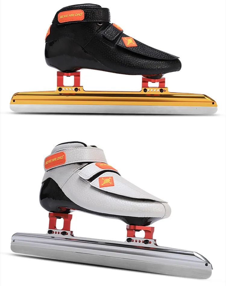 速滑刀比一般的刀(球刀,花刀)要长,刀刃窄且相对较平,这样在前进时蹬冰面积大而摩擦阻力小,冰鞋的鞋腰也设计的较矮,以便降低身体重心,减少空气阻力,使得滑行速度更快。