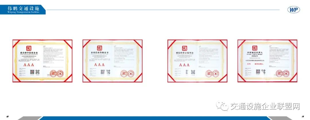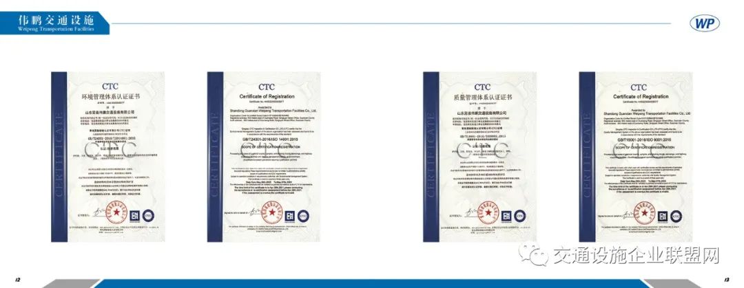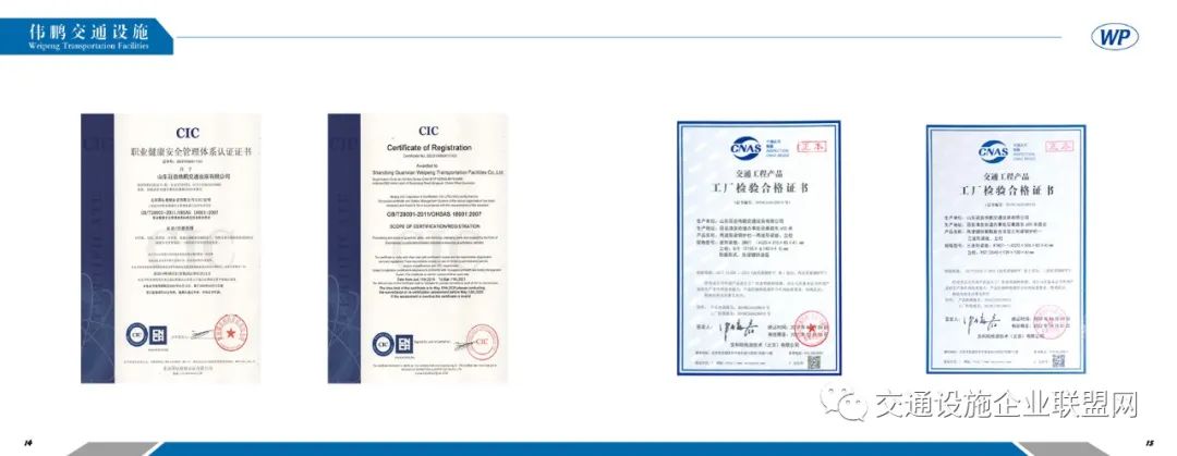 公司拥有完善的检测设备和质量管理体系,公司2020年获得ISO9001:2015质量管理体系认证,ISO14001环境管理体系认证,18001职业健康体系认证,冠县交通设施商会会员企业,产品覆盖全国范围远销新疆、云南、广西、安徽、陕西、甘肃、内蒙、贵州等地区均受到用户好评。