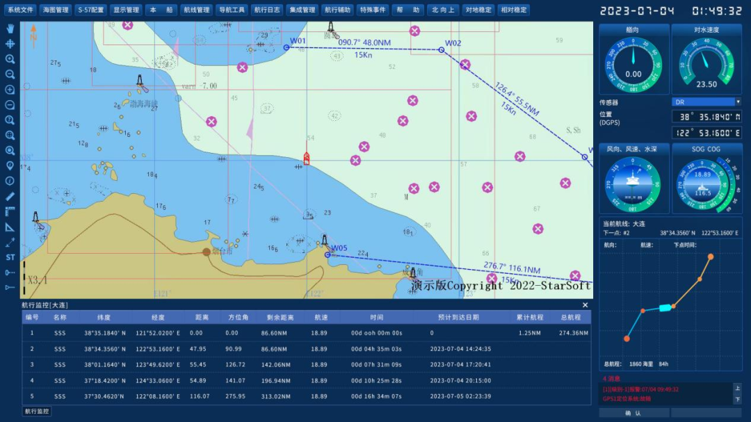 电子海图显示与信息系统(ECDIS)与定位、测深仪、雷达、AIS等设备连接,全面展现船舶行驶状态,符合国际标准,为船舶驾驶人员提供各种信息查询、量算和航海记录工具,助力航行决策。同时,可以与船舶自动控制系统实现连接,实现船舶的自动驾驶,让航行更加智能化和便捷。支持目标融合、航线规划、航线安全监测和偏航预警等功能,全方位保障航行安全。