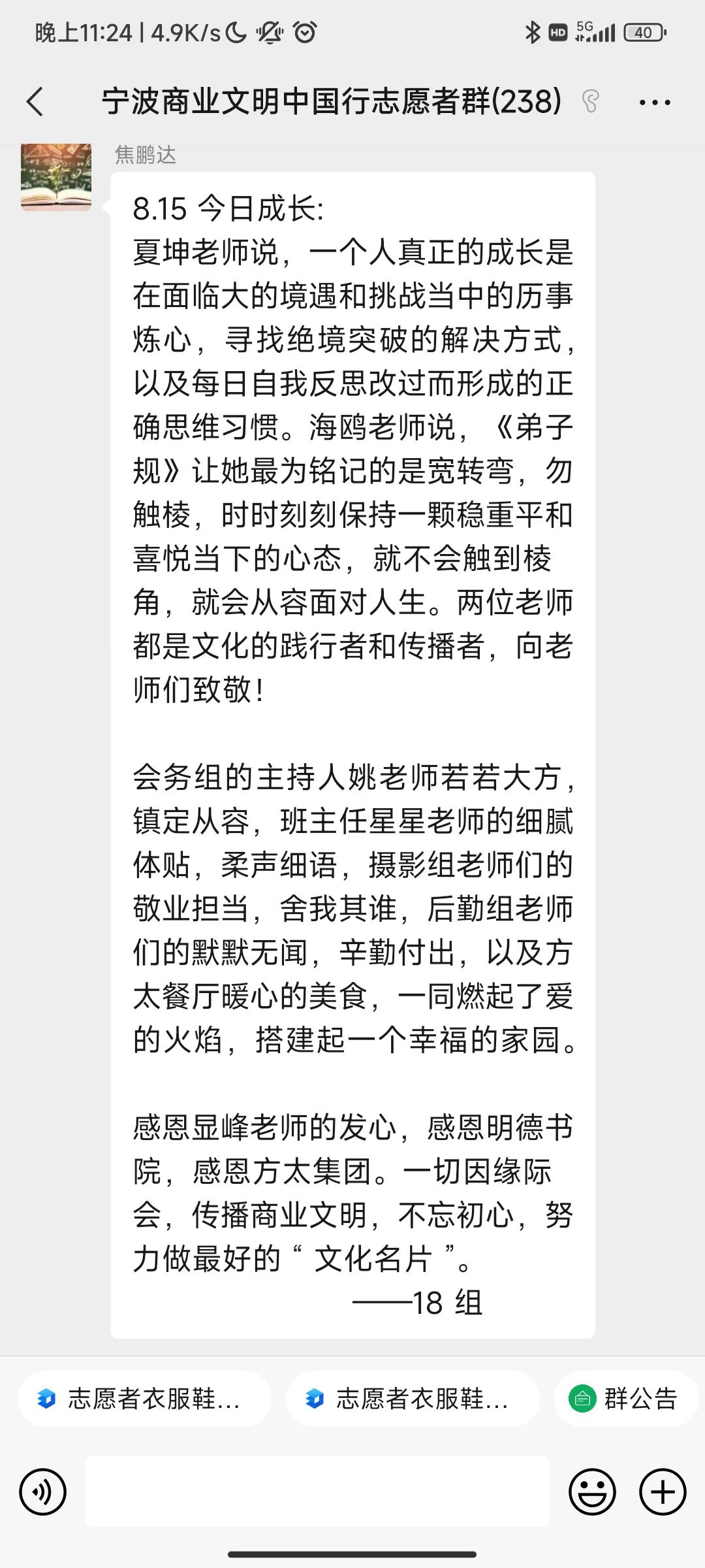 大家好,我叫石钰,是杭州明德书院的一名全职义工,这次来到商业文明中国行·宁波站服务,为大家带来前线志工老师的日常分享。