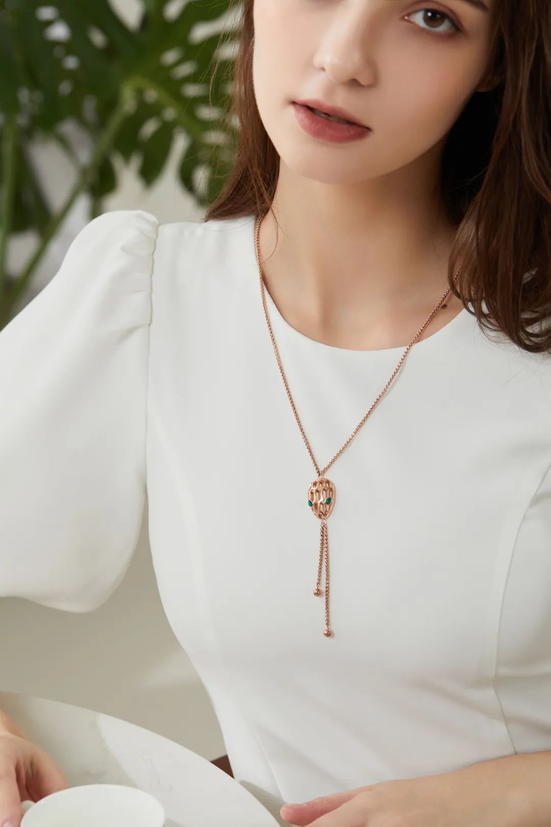 尤其是春夏季节佩戴,阳光的洒落穿透镂空的项链,折射出斑斓的光泽,夺目吸睛!