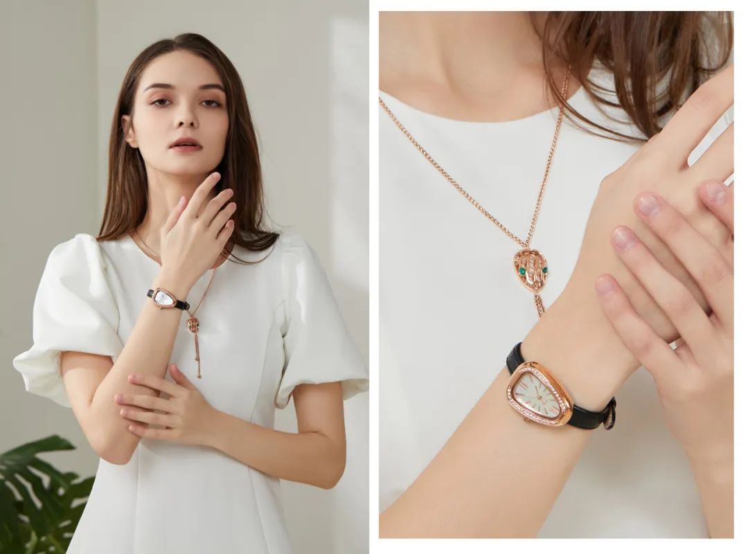 表盘更是特别,采用了罕见的蛇形表盘,不容易撞款式。戴在手腕上精致不失大气,分分钟戴出高级感。