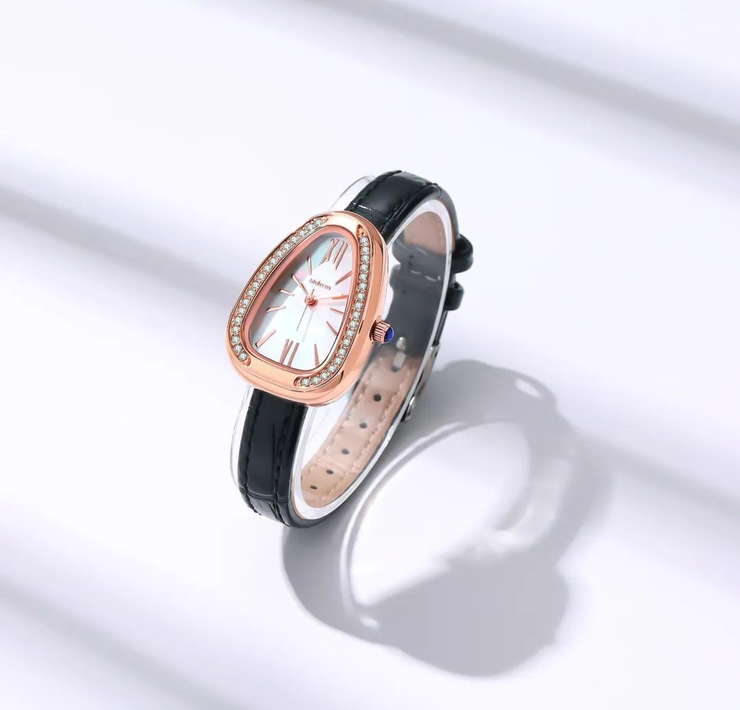 立体不规则艺术罗马刻度设计,高辨识度,很特别,搭配镶嵌天然白贝母,更具层次感和设计感。