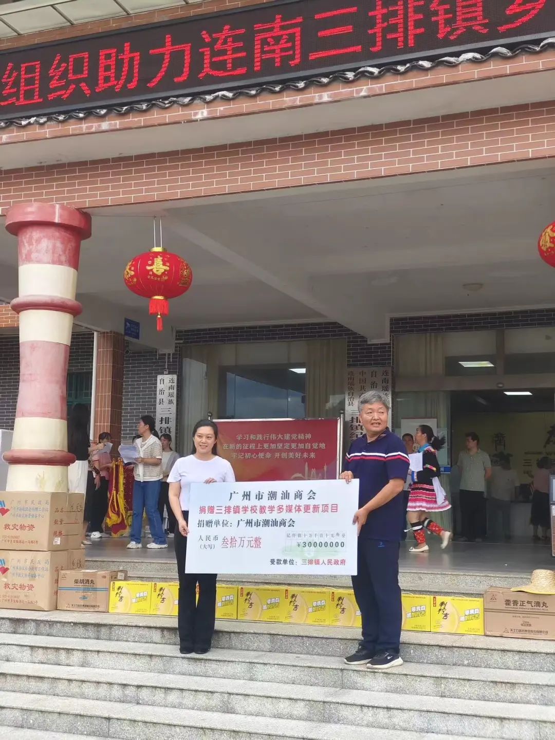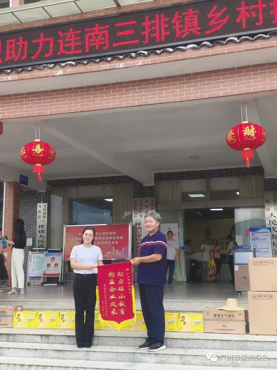 帮扶调研、专家义诊、物资捐赠……2023年8月9日,广州市社会组织管理局带领22家社会组织和会员企业,以及4家医院11名专家医生组成调研团到清远连南三排镇开展调研帮扶活动。受我会郭坚林会长委托,副秘书长郑雪兰参加活动,广州市潮汕商会向三排镇捐赠30万元,用于三排镇学校教学多媒体更新项目。广州市社会组织和企业向三排镇捐赠款物共计180.105万元。