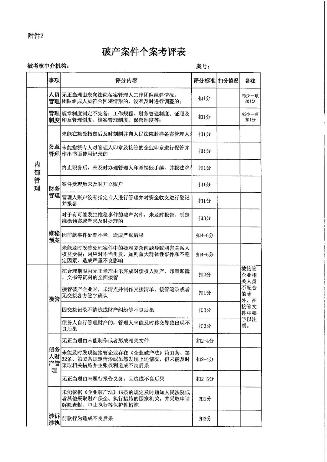 企业破产案件管理人考核细则