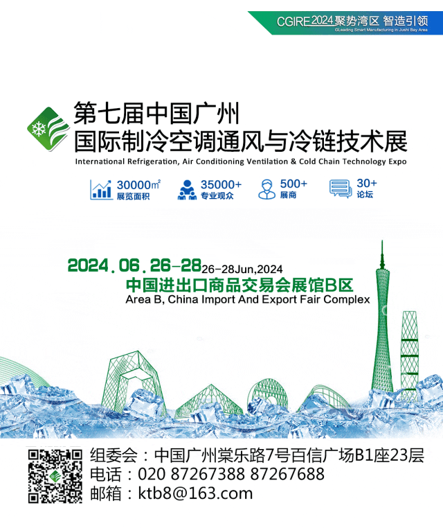 聚势湾区,智造引领!第七届中国广州国际制冷展将于2024年6月26-28日在广州·中国进出口商品交易会展馆继续隆重举办!展览面积30000㎡,专业观众35000+,参展企业500+,论坛30+,龙头企业汇聚,制冷领域全产业链展示;专业采购商、终端用户云集。粤港澳大湾区核心引领,世界级城市群万亿市场,值得期待!