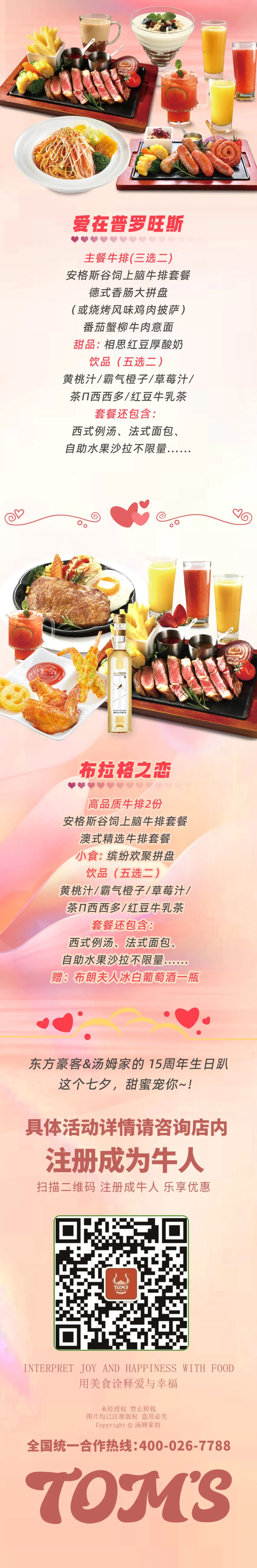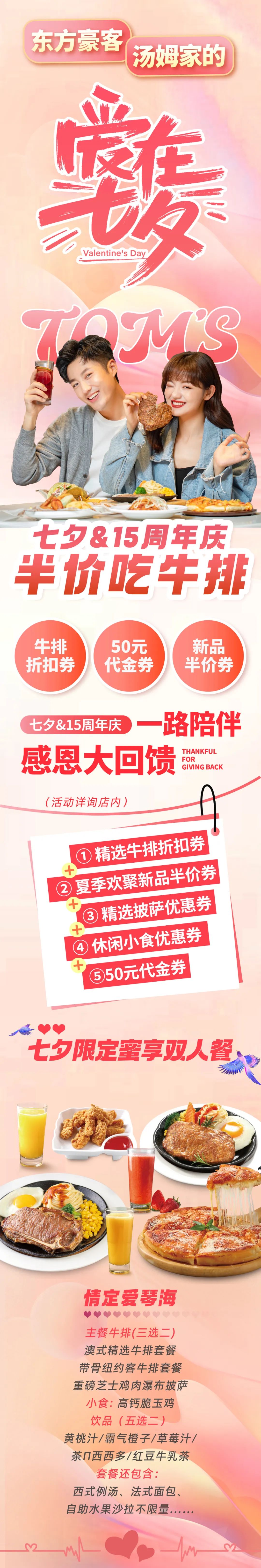 【东方豪客】爱在七夕&品牌15岁生日趴,半价吃牛排,甜蜜套餐,凭食力宠你~!
