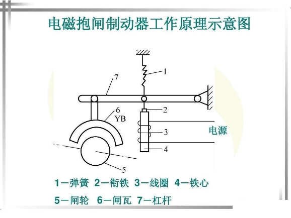 主要由两部分组成:制动电磁铁和闸瓦制动器。