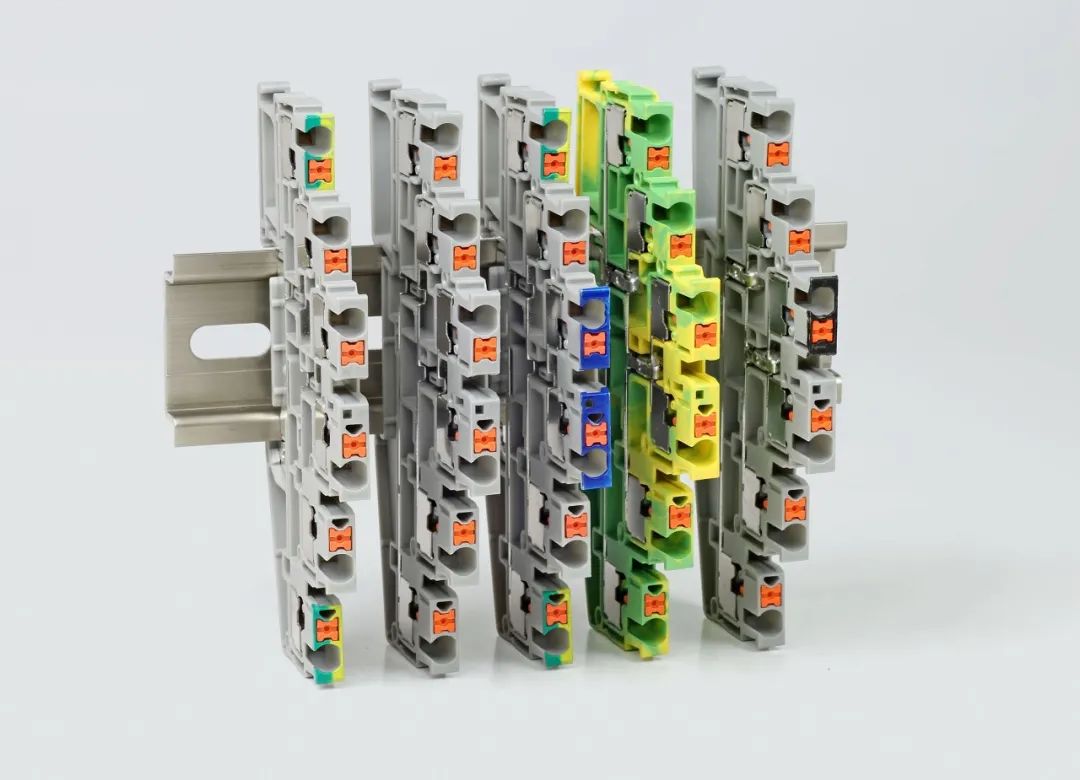 友邦电气三层型接线端子采用直插式进线,接线方便,无需工具,直接插入;工作效率高,比螺钉压接速度快30%以上。缩小了接线空间,将多位接线集成于一体。