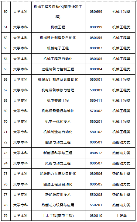 电工类、电子信息类、机械工程类、热能动力类、自动化类、土建类等专业大学专科及以上学历,财务类专业研究生学历,具有军队服役经历者优先考虑,以上学历和专业以全日制最高学历、主修专业为准,具体如下。