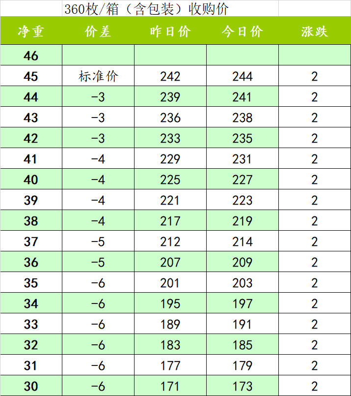 今日收购价格244元/件.