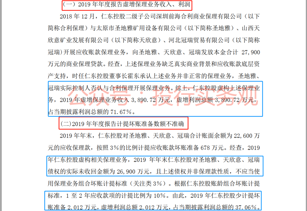 结果就是经过调查,挖出了公司保理业务存在虚增收入、虚增利润等一系列事实: