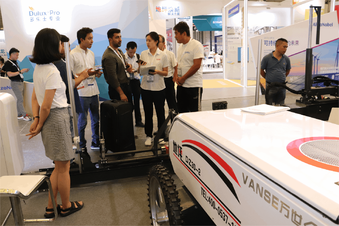 展会上通过大屏幕视频演示、操作体验、技术工程师机器实操、专业技术人员讲解等多样形式展示方式,解答客户关心的机器施工方式、效果等问 题,客户朋友们纷纷给予了正面回应,对万世的地坪系列设备赞不绝口