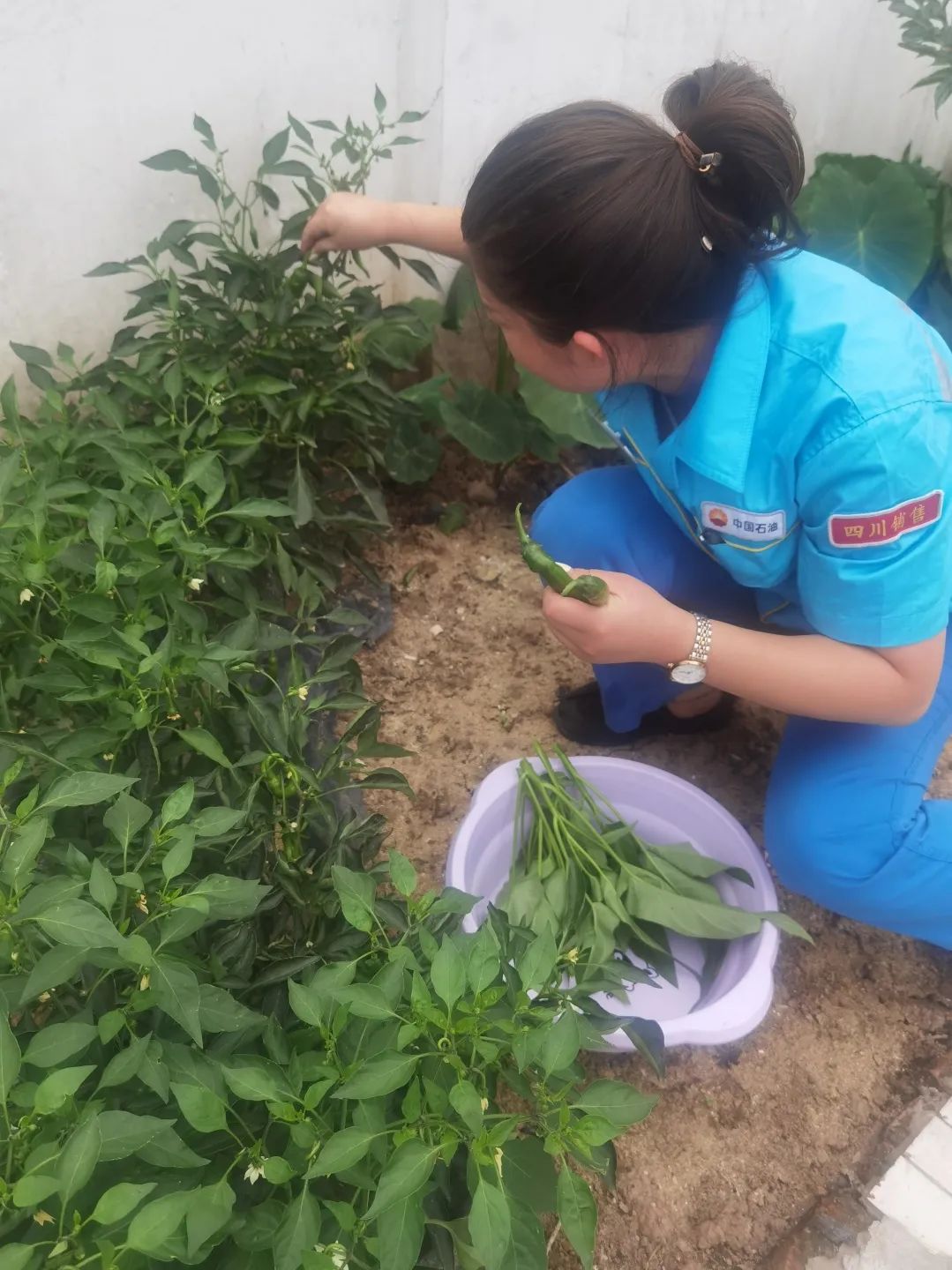 采摘蔬菜是员工们最开心的时刻,成熟的蔬菜摘进厨房,烹调后摆上餐桌,吃到自己种的放心蔬菜,增强了员工们对油站的归属感,让大家感受到“家文化”带来的温馨。