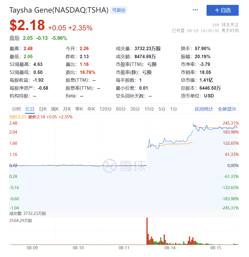 受此消息影响,Taysha的股价连日涨幅超200%。