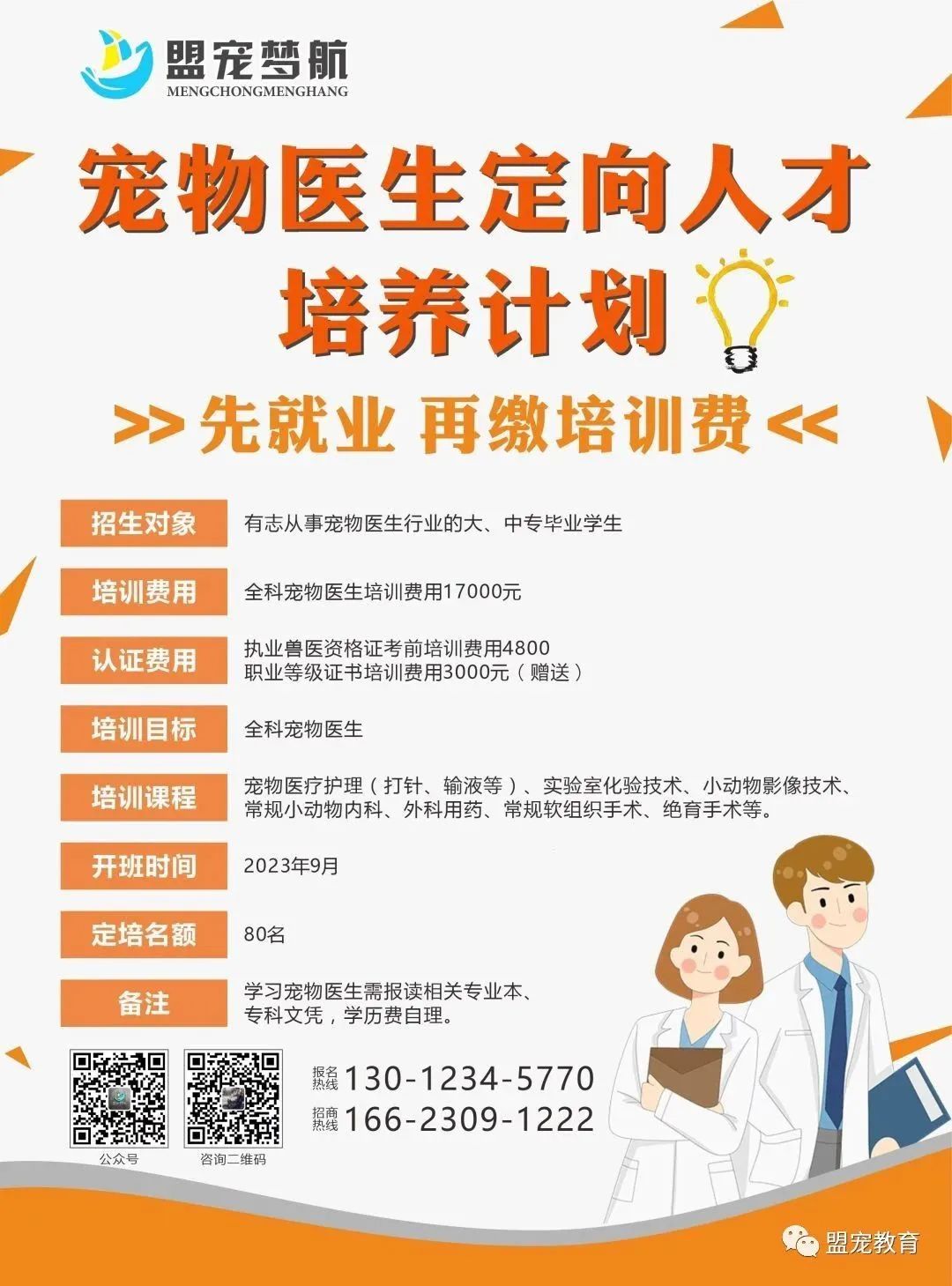 现在就行动起来,加入盟宠梦航职业技能培训学校,开启你的宠物全科医生之路!