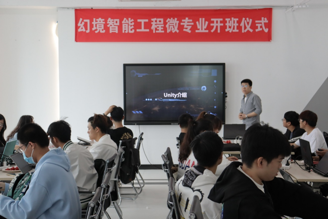 2023年5月27日,讯飞幻境(青岛)科技有限公司与青岛黄海学院大数据学院举行了幻境智能工程微专业开班暨XR+AI人才培养示范基地揭牌仪式。