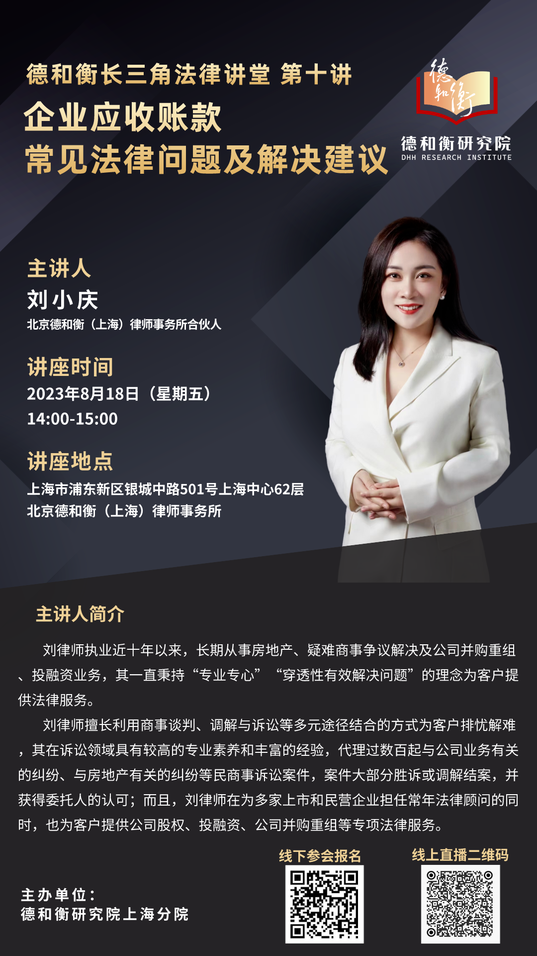 活动邀请 | 8月18日·企业应收账款问题及解决建议——德和衡长三角法律讲堂第10讲(附第9讲直播回放)