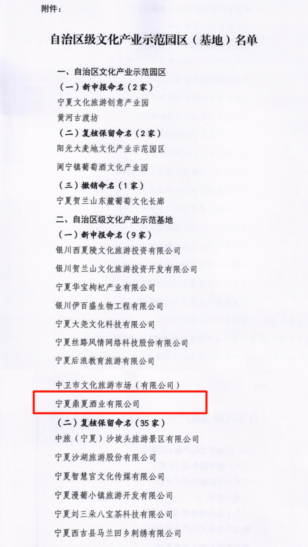 日前,自治区文化和旅游厅公布自治区级文化产业示范园区(基地)名单,宁夏鼎夏酒业有限公司获“自治区级文化产业示范基地”命名,实现了灵武市自治区级文化产业示范园区“零”的突破。