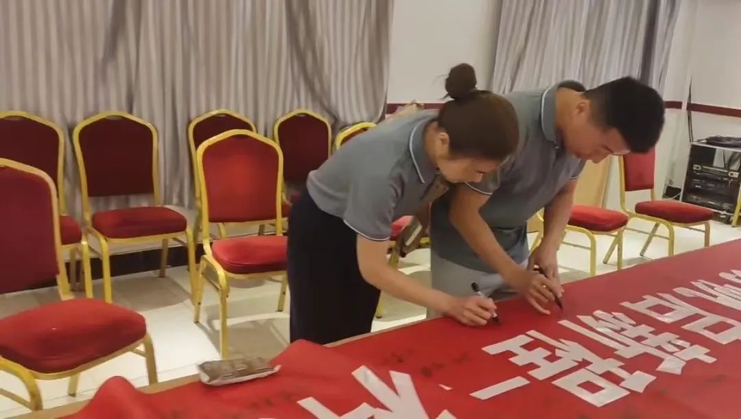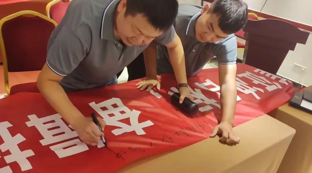 会议结束,我们在横幅上写下自己的愿望与目标。