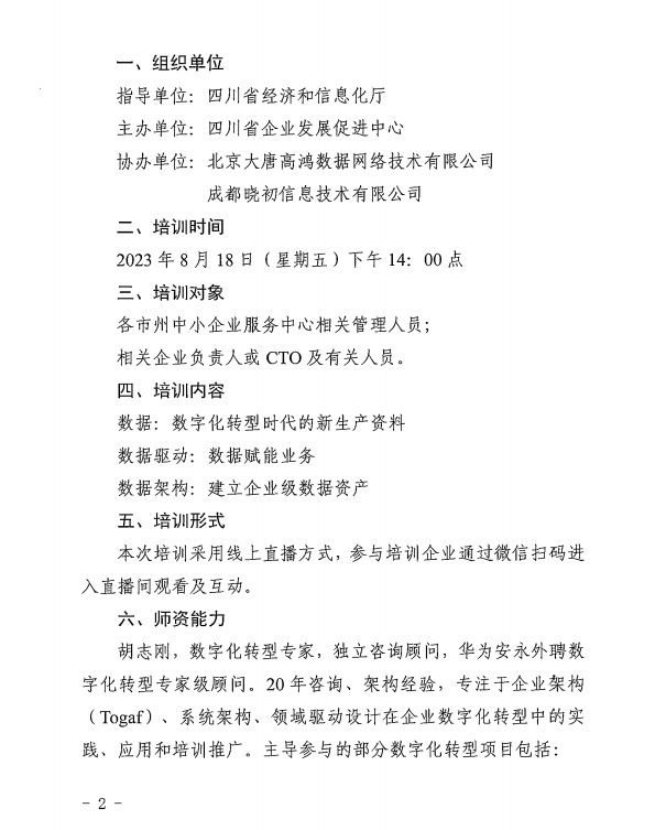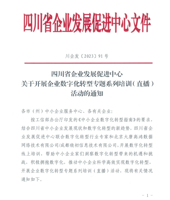 四川省企业发展促进中心关于开展企业数字化转型专题系列培训(直播)活动的通知
