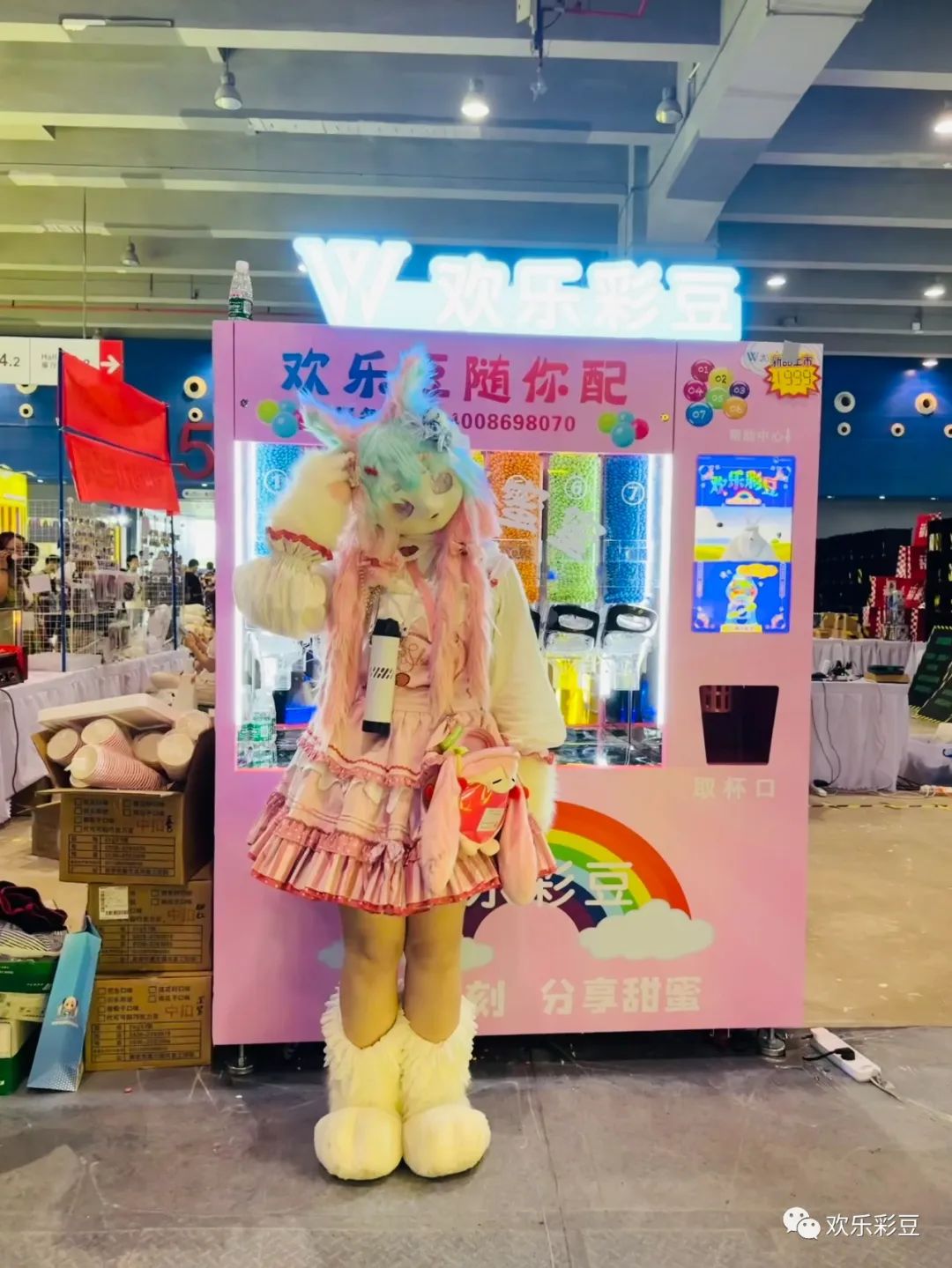 欢乐彩豆,巧克力豆自助售卖机在展会上大放异彩。