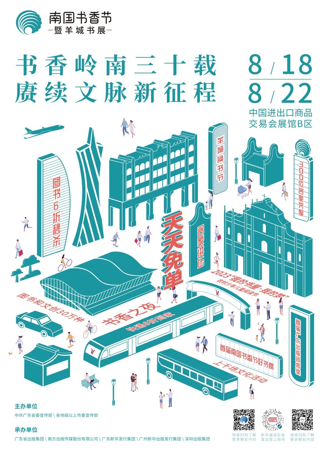 2023南国书香节暨羊城书展(以下简称“南国书香节”)将于8月18日至22日举办,主会场回归中国进出口商品交易会展馆B区,全省设立535个地市分会场,73个乡村分会场,同时全年常态化运营线上平台,让阅读的种子开出更多思想之花。