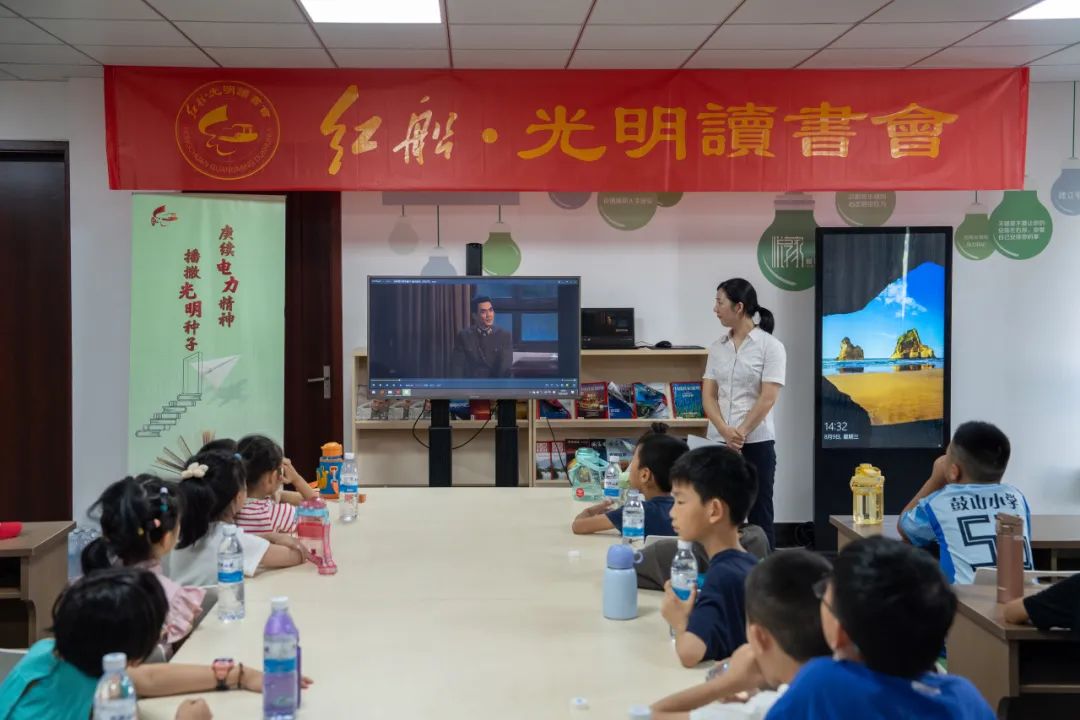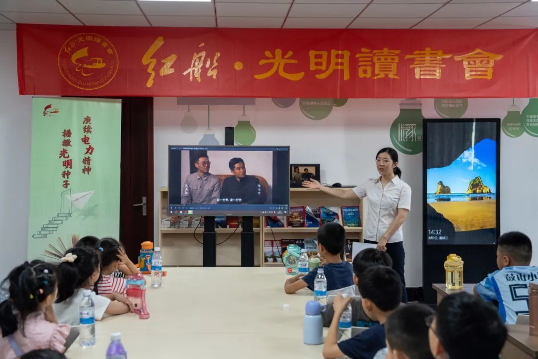 “80多年前,周恩来总理和我们绍兴电力有着一场特殊的缘分。”为了让职工子女了解电力工作精神,儒岙供电所红船·光明书舟成员朱琴为小朋友们讲述了八十年前周恩来总理光明嘱托的故事,并播放了主题宣传片《逐光致远》,还原了当时的历史场景,让职工子女感受到爸爸妈妈所从事电力工作的深刻内涵,在心中种下光明的种子。“光明,就是光明战士,能够打败黑暗。”简短有力的发言,却是小朋友心中对光明的更深理解。