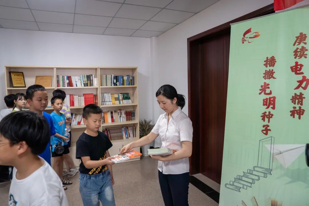 立足于小朋友日常科普学习、丰富暑期业余生活的角度,儒岙供电所红船·光明书舟成员向小朋友们推荐了《寻宝记》《问吧》《十万个为什么》等文化科普书籍,并邀请小朋友分享书中的故事和知识,让小朋友在知识的海洋遨游,提升读书的趣味性和阅读性。活动最后,红船·光明书舟成员为不同年级的小朋友分别挑选了一本书籍送到他们手上,希望小朋友们能够增加对读书的兴趣,养成好读书、读好书的习惯,让知识提升修养、成就自我。