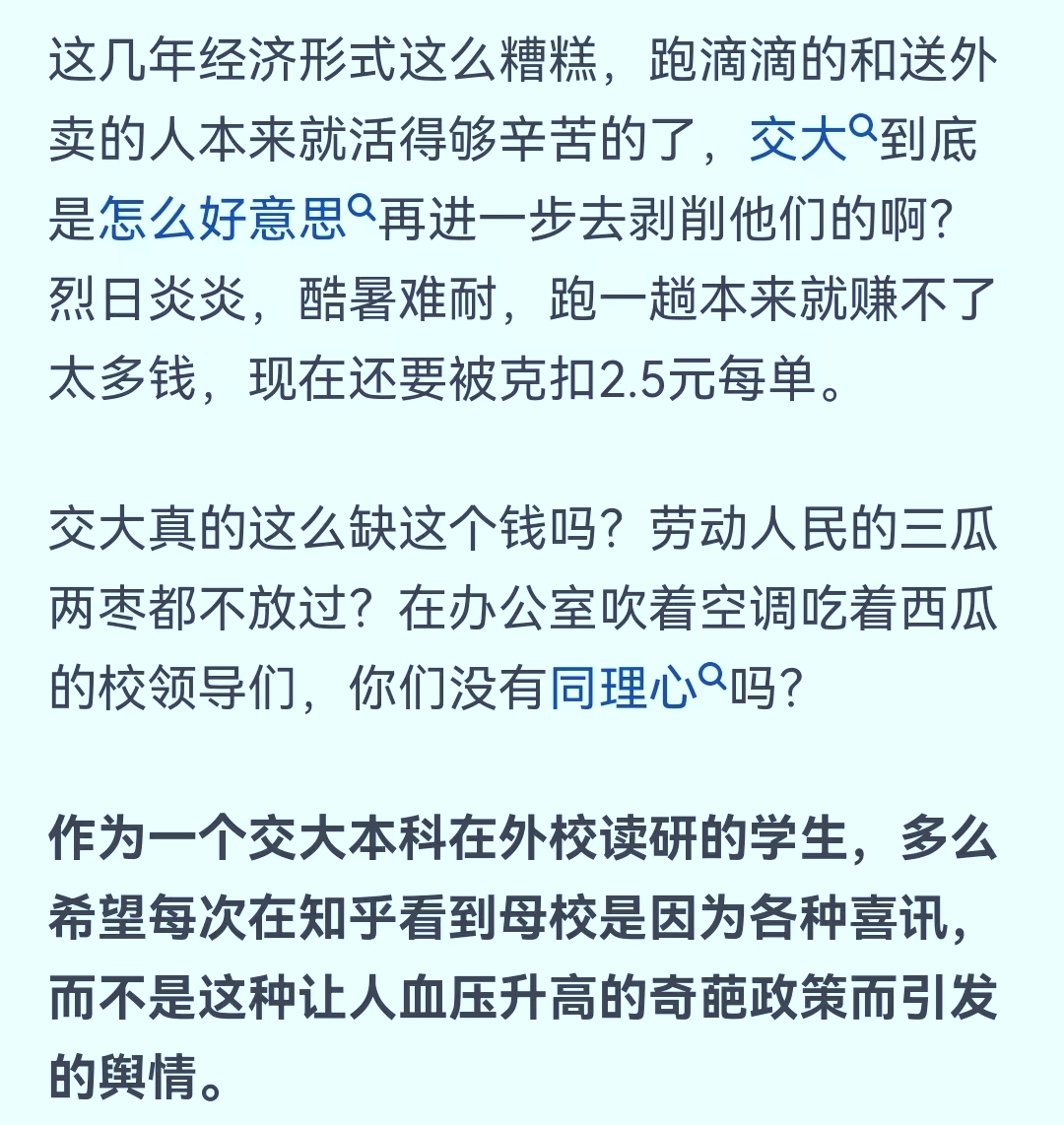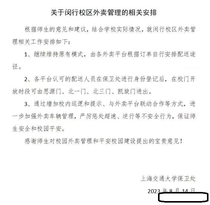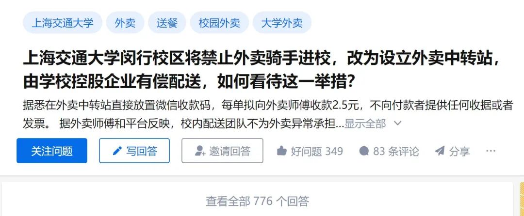 近日,一则“上海交通大学闵行校区将禁止外卖骑手进校,改为设立外卖中转站,由学校控股企业有偿配送,如何看待这一举措?”的话题在网上引起了广泛关注,下面让我们了解一下。