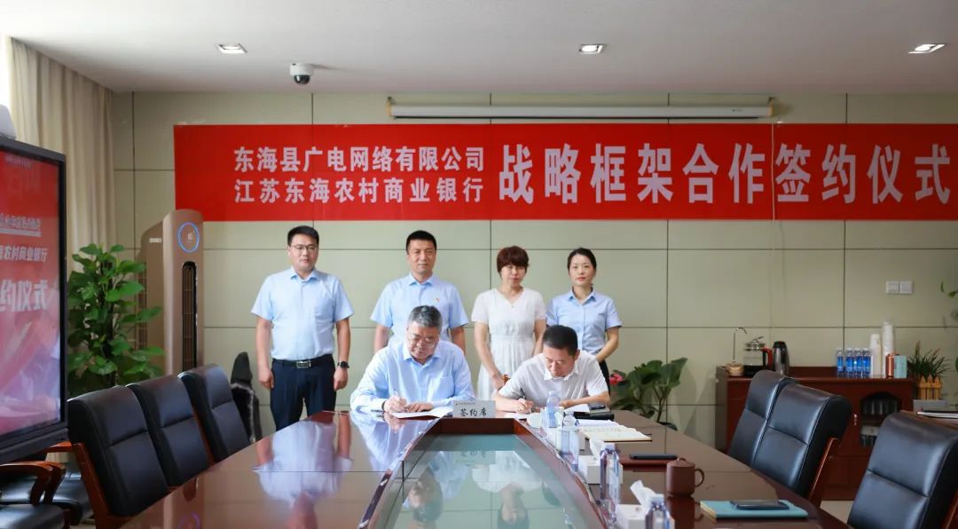 为深入推进主题教育走深走实,探索“文化+金融”综合服务模式,共同开创金融与文化跨界融合新生态。8月16日,江苏省广电有线信息网络股份有限公司与江苏省农村信用社联合社联合举办战略合作签约仪式暨业务工作推动视频会,东海县广电网络有限公司党委书记、总经理倪天呈,综合管理部主任徐咏梅,东海农商银行党委书记、董事长张军,党委副书记、行长邹兵在东海农商银行分会场参加会议。视频会后,东海县广电网络有限公司与东海农商银行举行战略合作签约仪式。