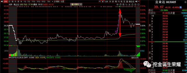 竞业达,最高冲到7个点,均价线还是在负3个点,乖离了10个点,你认为它涨停的可能性有多大?如果你高点追进去了,6给点的大面你是放点炸酱呢还是鸡蛋西红柿?