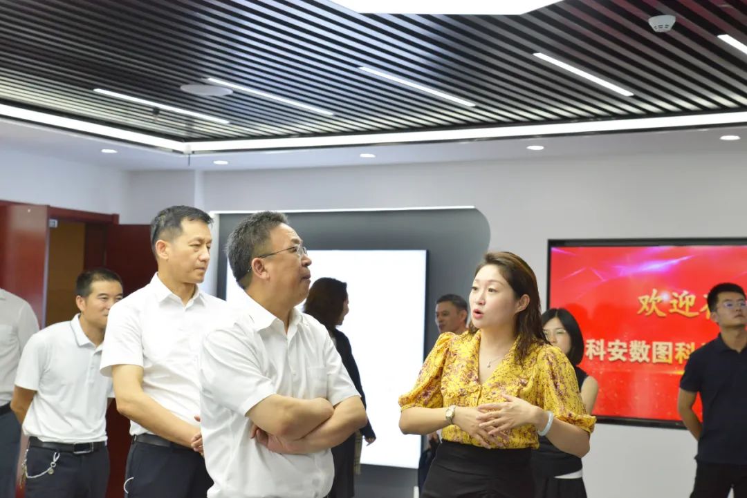 随后科电数据公司总裁、科安数图公司董事长曹玲陪同湖南省驻北京办事处领导及内蒙古湖南商会企业家一行到科电数据公司参观并进行座谈。