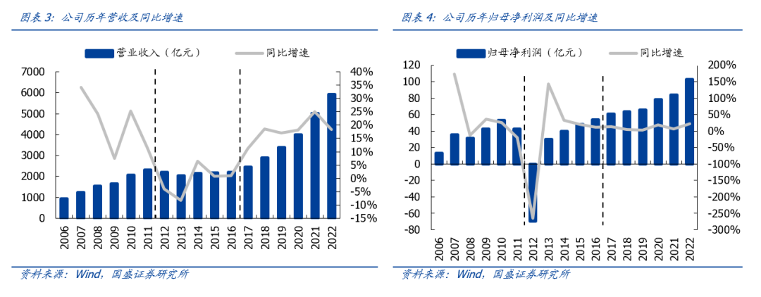 从历史营收及业绩表现看,公司发展可大致分为以下三个阶段: