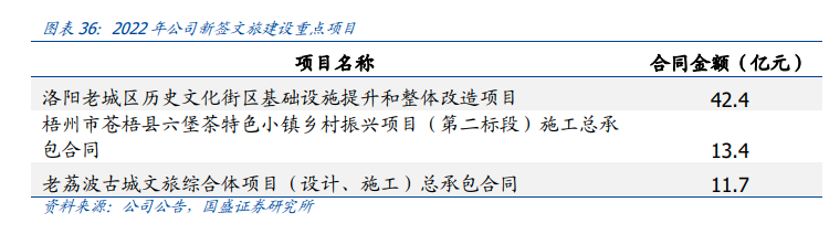公司为全球最大的主题公园建设承包商,是国内唯一同时具有主题公园设计、施工总承包资质的企业,开拓文旅工程建设领域多年,具有较强的品牌影响力。2018年中标北京首家国际一流特大型主题公园-北京环球度假区、印尼MNC主题公园等国内外大型文旅工程,随首批标志性工程落地验收,公司主题公园建设业务市场认可度不断提升。2022年,公司继续承接洛阳老城区历史文化街区基础设施提升和整体改造项目、梧州市苍梧县六堡茶特色小镇乡村振兴项目(第二标段)、老荔波古城文旅综合体项目(设计、施工),进一步彰显龙头竞争优势。