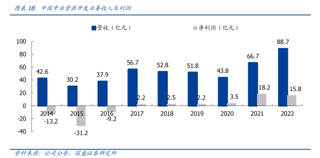 4)地产开发业务:公司为国务院国资委首批确定的以房地产开发为主业的16家中央企业之一,主要通过下属子公司中冶置业经营地产开发业务。受地产调控政策逐步放宽影响,2022年板块扭亏为盈,净利润达1.7亿元。后续公司将在加快重点区域优质土地储备工作的同时积极探索融资模式,以旧城改造、区域开发、总部经济等方式增加战略土地储备,打造地产综合开发运营业务板块。