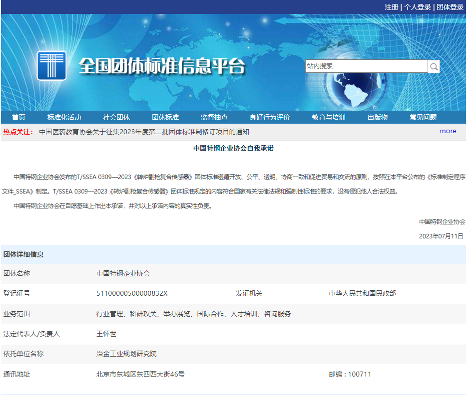 近日,河钢集团唐钢公司微尔自动化有限公司与冶金工业规划研究院共同起草制定的《转炉副枪复合传感器》团体标准,由中国特钢企业协会在“中国团体标准信息平台”上发布。