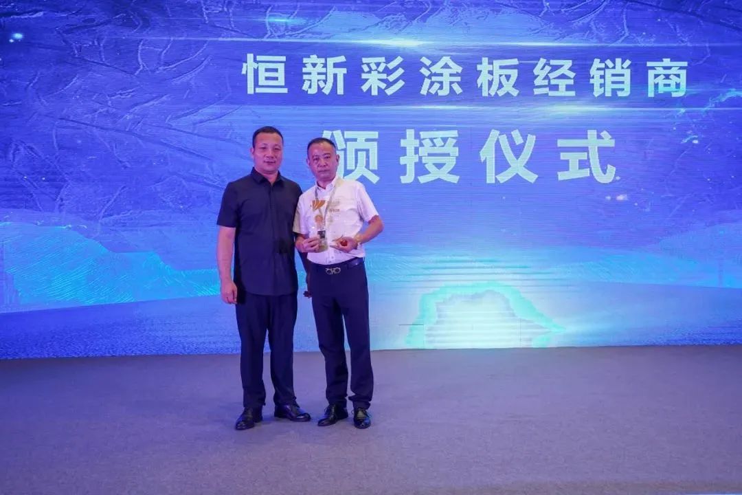 在恒新彩涂板经销商的颁授仪式上,京华企业总经理陈铁柱先生为南昌市瑞钢源金属材料有限公司总经理林清松先生颁发了授权书,通过此次颁授与瑞钢源的合作也再次迎来了新的机遇,即将书写全新的发展篇章。恒新彩涂板的成功得益于合作伙伴的支持和努力,而颁授仪式则是感谢和祝福合作伙伴最真挚的时刻。这个仪式不仅深化了双方之间的合作,而且激励着经销商继续为恒新彩涂品牌的成功推广努力。