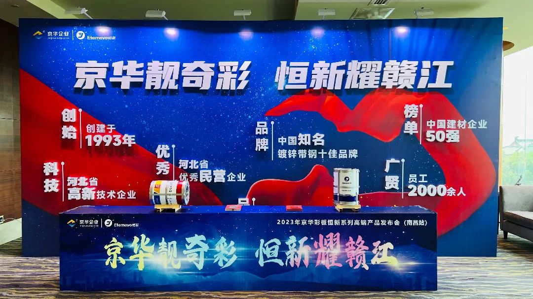 8月12日,由霸州京华金属制品有限公司与河北兆建金属制品有限公司联合主办,南昌市瑞钢源金属材料有限公司协办的“京华靓奇彩,恒新耀赣江”——2023年京华彩板恒新系列高端产品发布会在南昌举办。