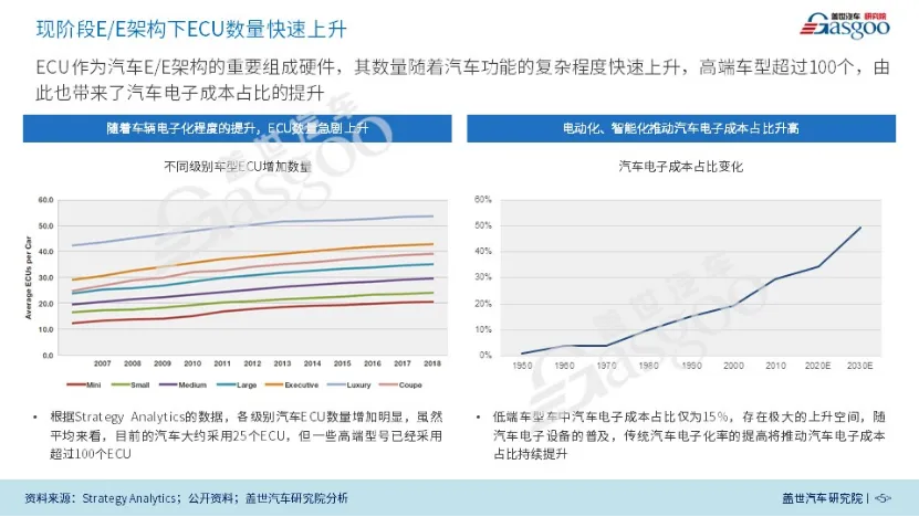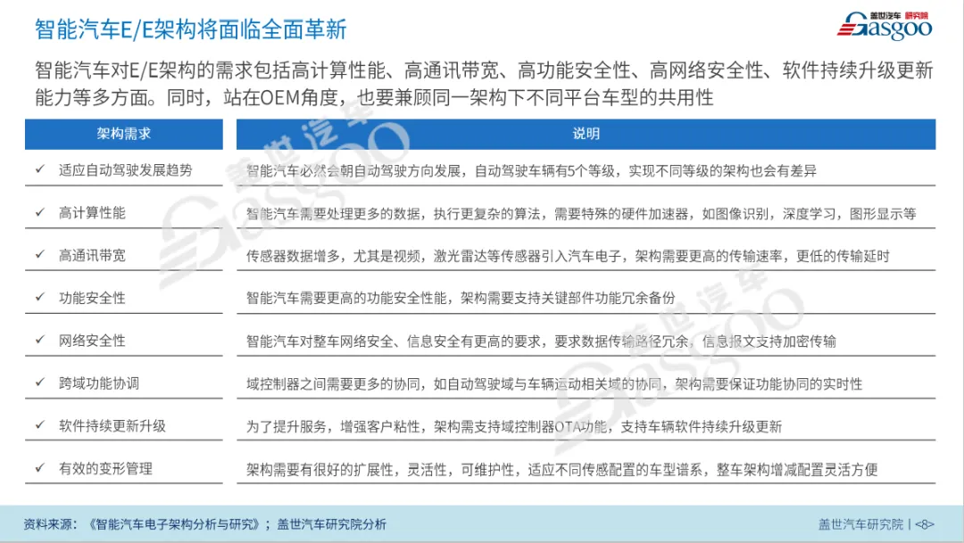 近期盖世汽车联合TE研究推出了《智能汽车E/E架构产业报告》从EEA概述、EEA升级趋势、主流企业EEA分析以及未来展望等几方面对产业进行解读,为行业同类型企业发展提供参考,报告共35页,获取完整PDF可在本公众号发送“电子电气”登记个人信息,3个工作日内将完整报告发送到邮箱。