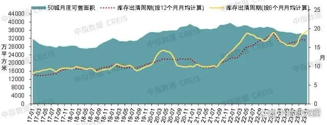 受供给端表现整体偏弱影响,截至11月末,50个代表城市商品住宅可售面积约3.4亿平方米,较2022年底下降9.4%,但规模仍处在近年高位。出清周期方面,截至2023年11月末,按近6个月月均销售面积计算,重点50城短期库存出清周期为19.5个月,较2022年末延长1.4个月,其中三四线代表城市短期库存出清周期达28.1个月,短期库存去化压力大。