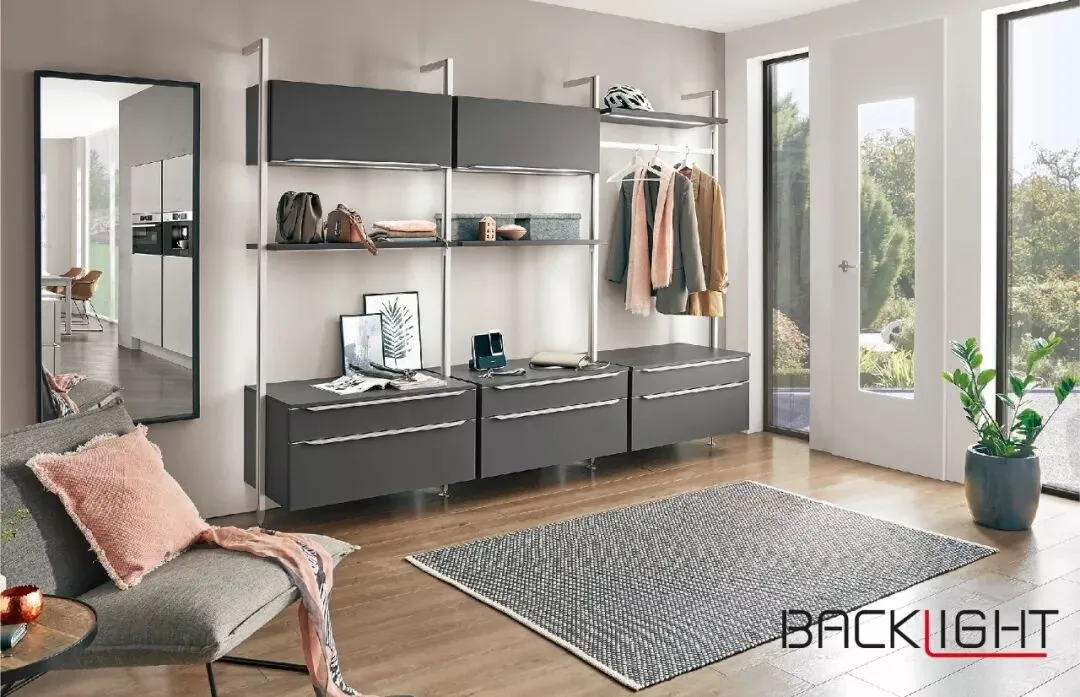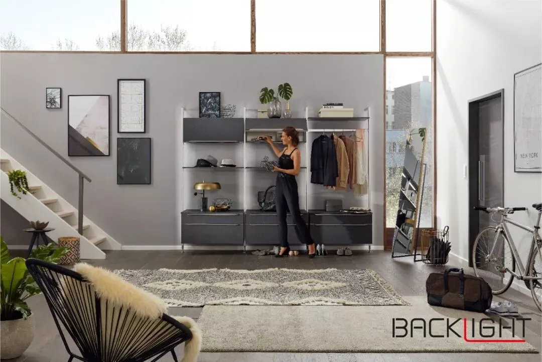 优雅而实用的照明系统一直是德国柏丽整体家居设计中的点睛之笔,配合INFINITY SHELVING SYSTEM开架系统,此次全新发布的BACKLIGHT开架背光灯带照明系统,以开创性的嵌入式背光,兼顾照明功能的同时,亦突显开架式空间的线条美感,缔造空间氛围的高级感官体验。