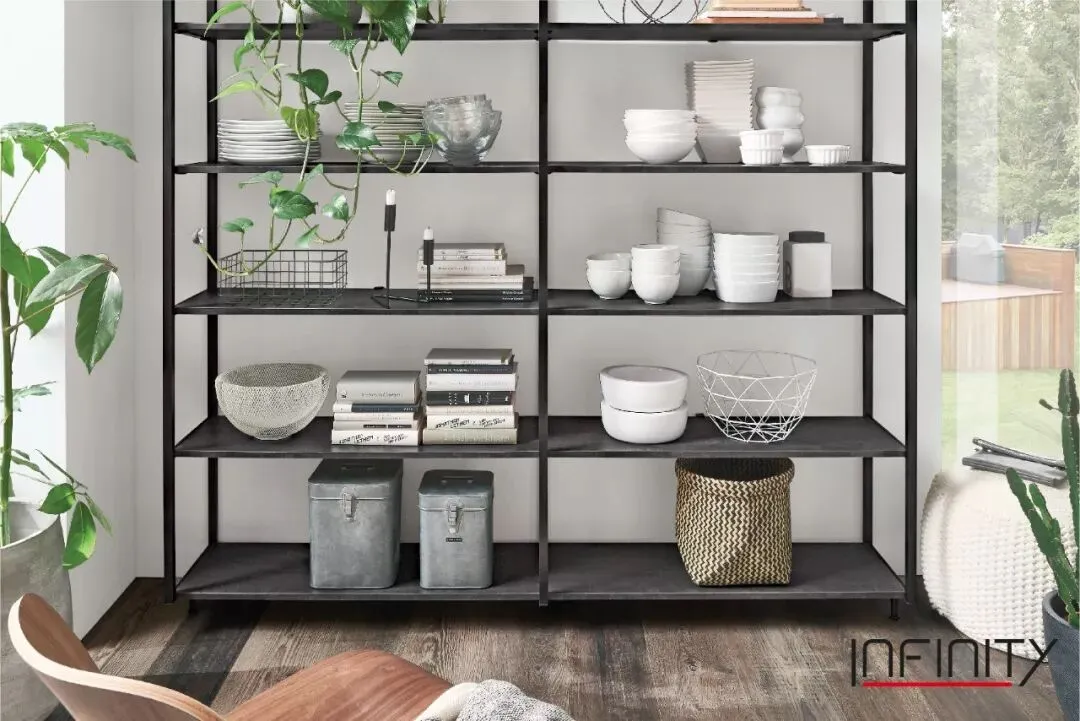 新品INFINITY SHELVING SYSTEM开架系统,以极简线条设计、多样材质运用及无限可能的组合形式为厨房及所有家居空间创造储物及展示的全新空间。