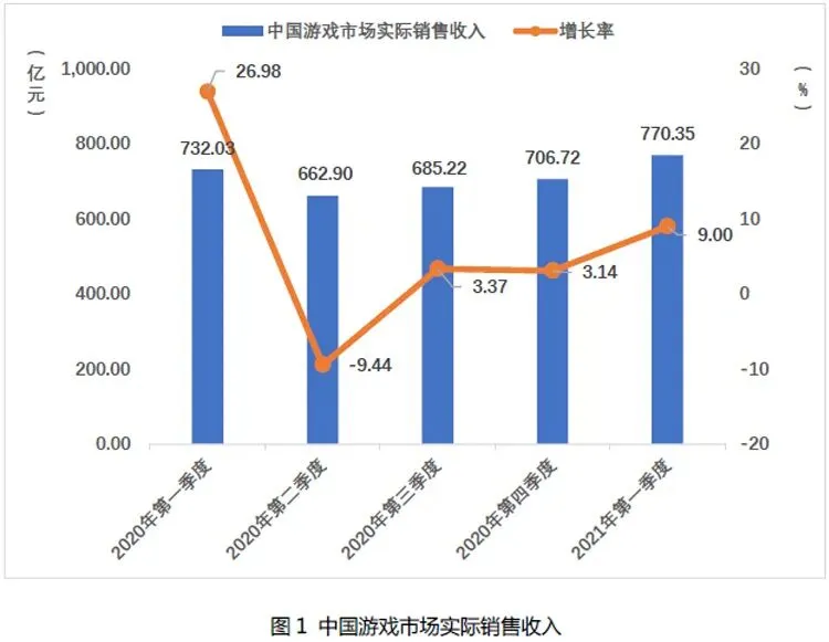2021年第一季度,游戏厂商推出元旦、春节假期活动,用户的消费愿望增强,中国游戏产业实际销售收入实现阶段性增长,多款游戏产品取得了比较好的成绩。