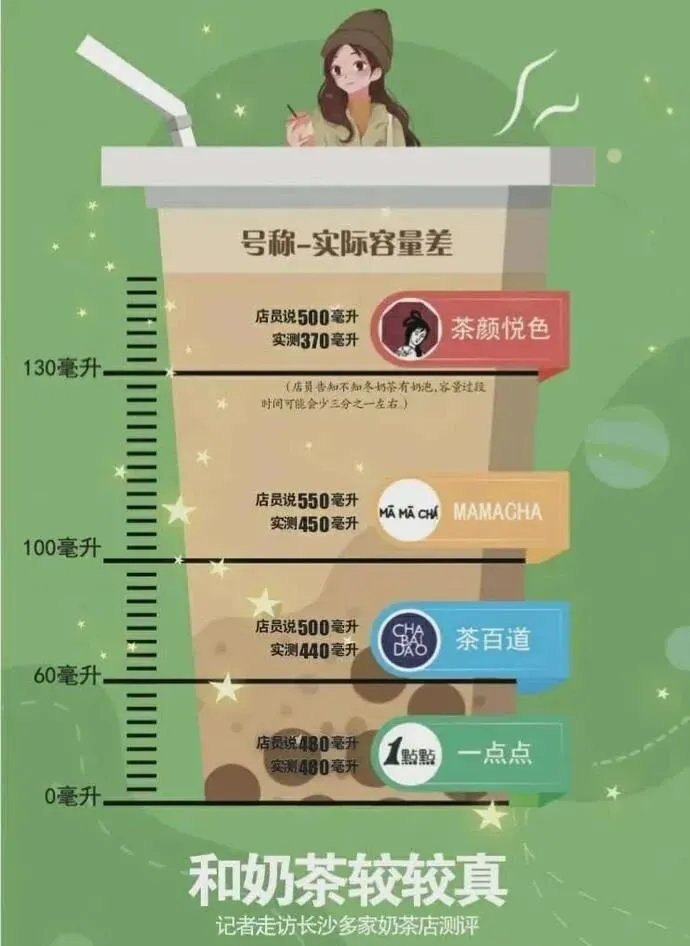 5、媒体曝光多家奶茶容量与描述不符,茶颜悦色回应:要趁热喝