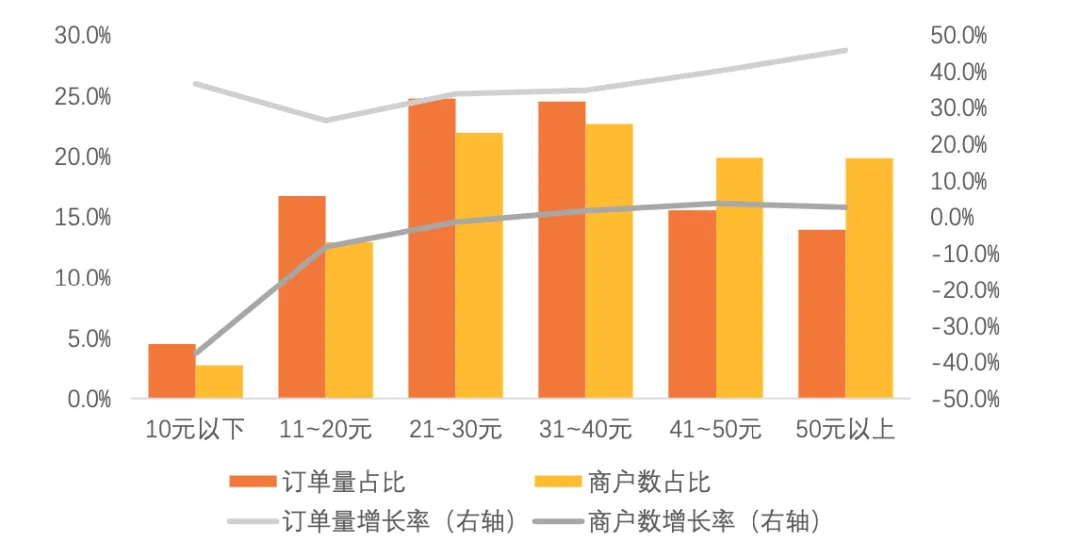 随着下沉市场对小吃消费需求的增长,三线、四线、五线城市小吃需求增速较快,小吃订单量增速分别达到37.7%、43.5%和45.5%。