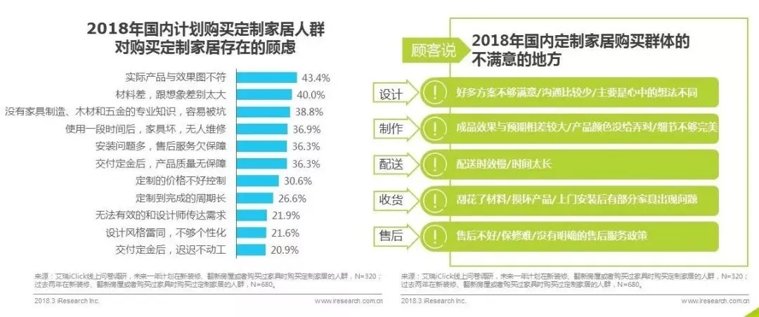 计划购买定制家居的用户中,43.4%担心实际产品和效果图不符,40%的用户担心实际用材差,38.8%的用户担心没有专业知识容易被坑。