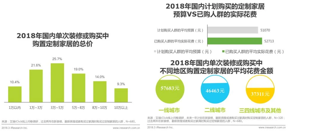 ▌单次装修或购买中购置定制家居的均价为5万+