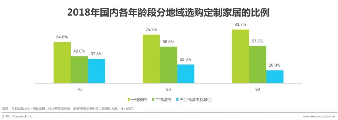 90后购买定制家居的比例最高 70群体市场有较大上升空间