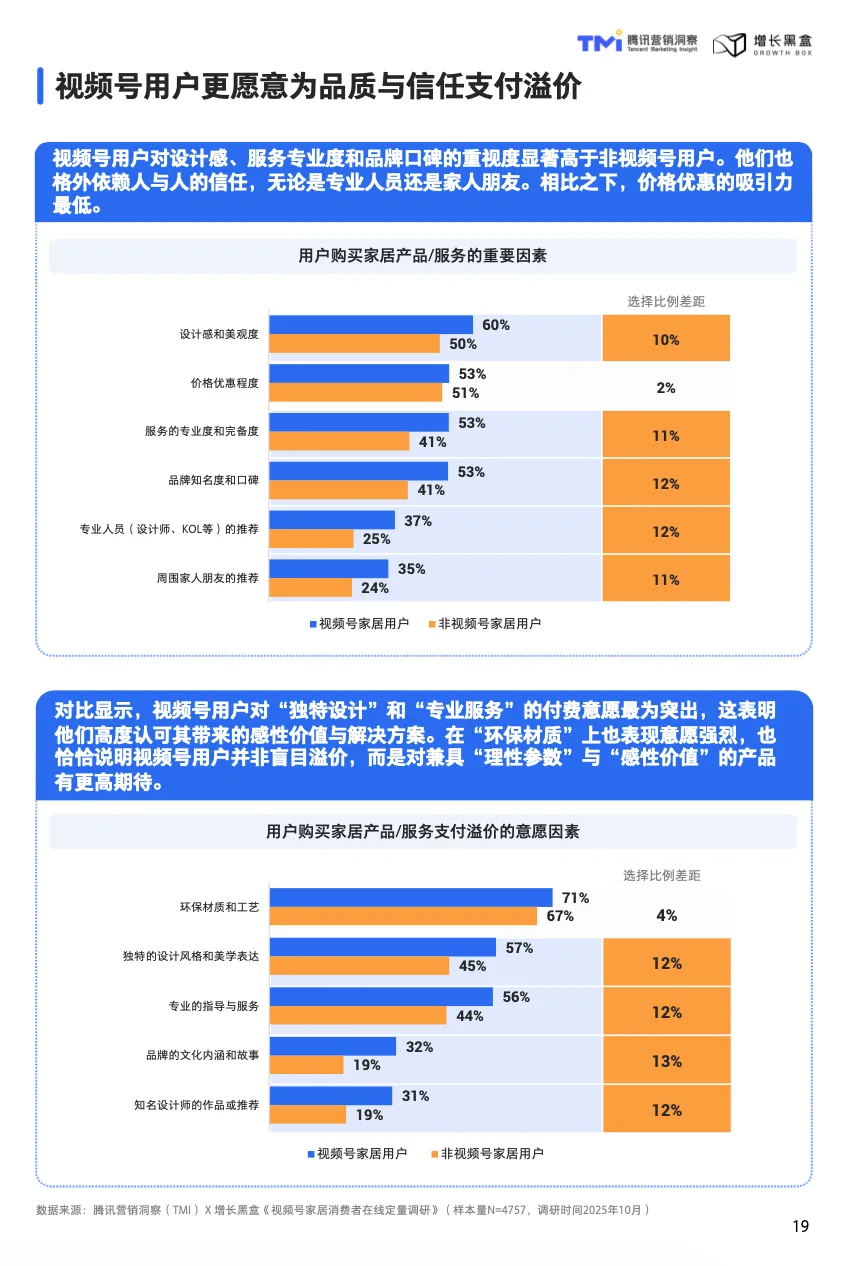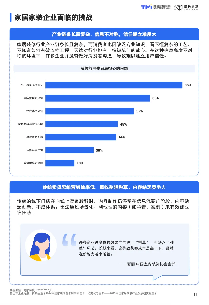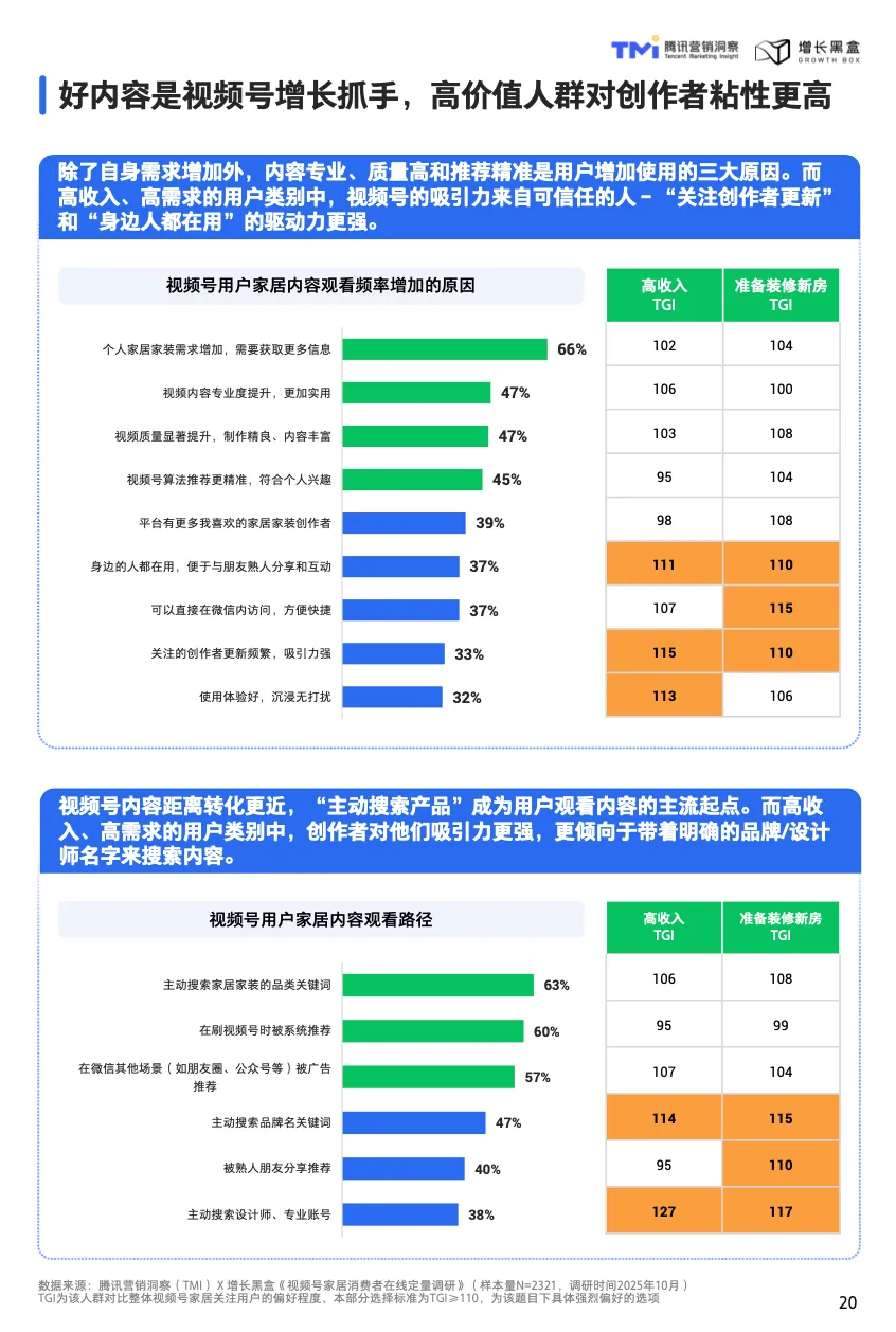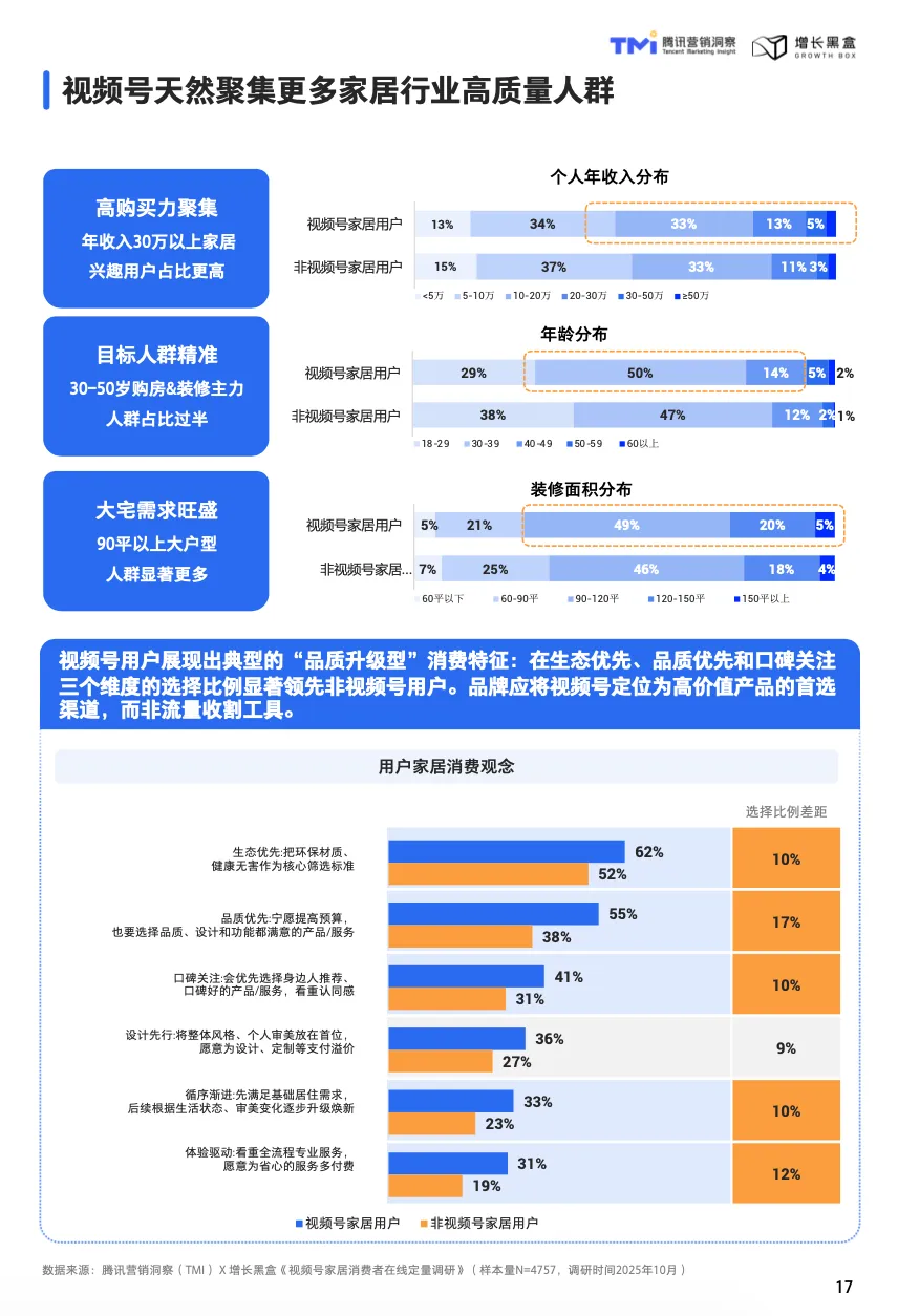 本报告揭示的核心是:以“人设”为媒介的深度关系经营,已经成为#家居行业 营销的新机会点。微信生态,凭借其独特的社交土壤与公私域闭环,正成为家居品牌破解信任难题、连接高价值人群的关键场域。#视频号 让专业内容得以在信任关系链中高效流转,无论是创始人、设计师、工长还是美学博主,这些真实、专业、可信赖的人设,正以人格化内容穿透信息噪音,为品牌提供可持续的信用背书。